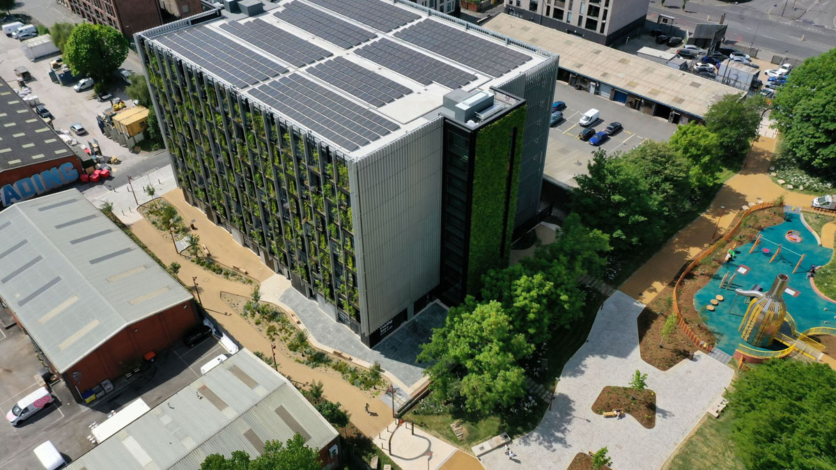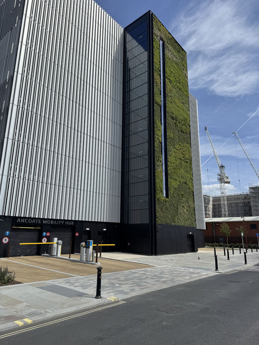 - Eye-catching 400m² green wall and 950m² planted façade enhancing biodiversity, air quality, and visual amenity